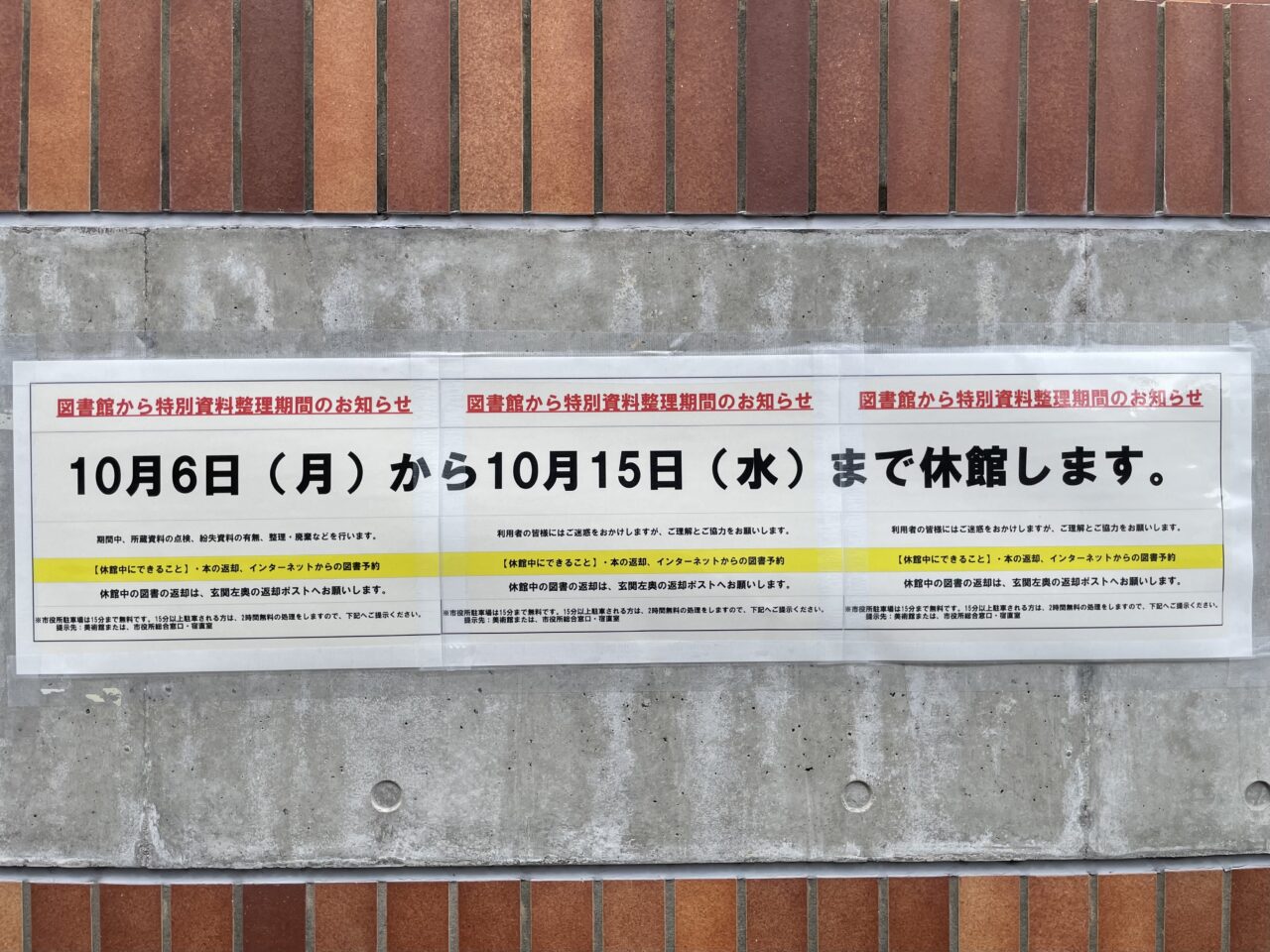 2025年10月6日(月)〜10月15日(水)の10日間、「米子市立図書館」が蔵書点検のため休館します。