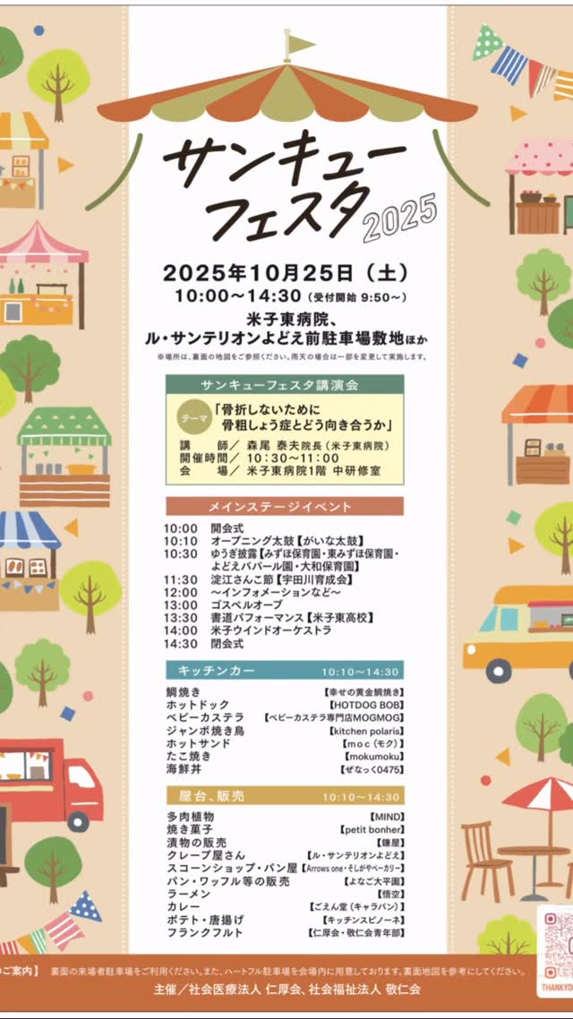 【米子市】10月25日(土)、米子東病院で「サンキューフェスタ2025」が開催されます!