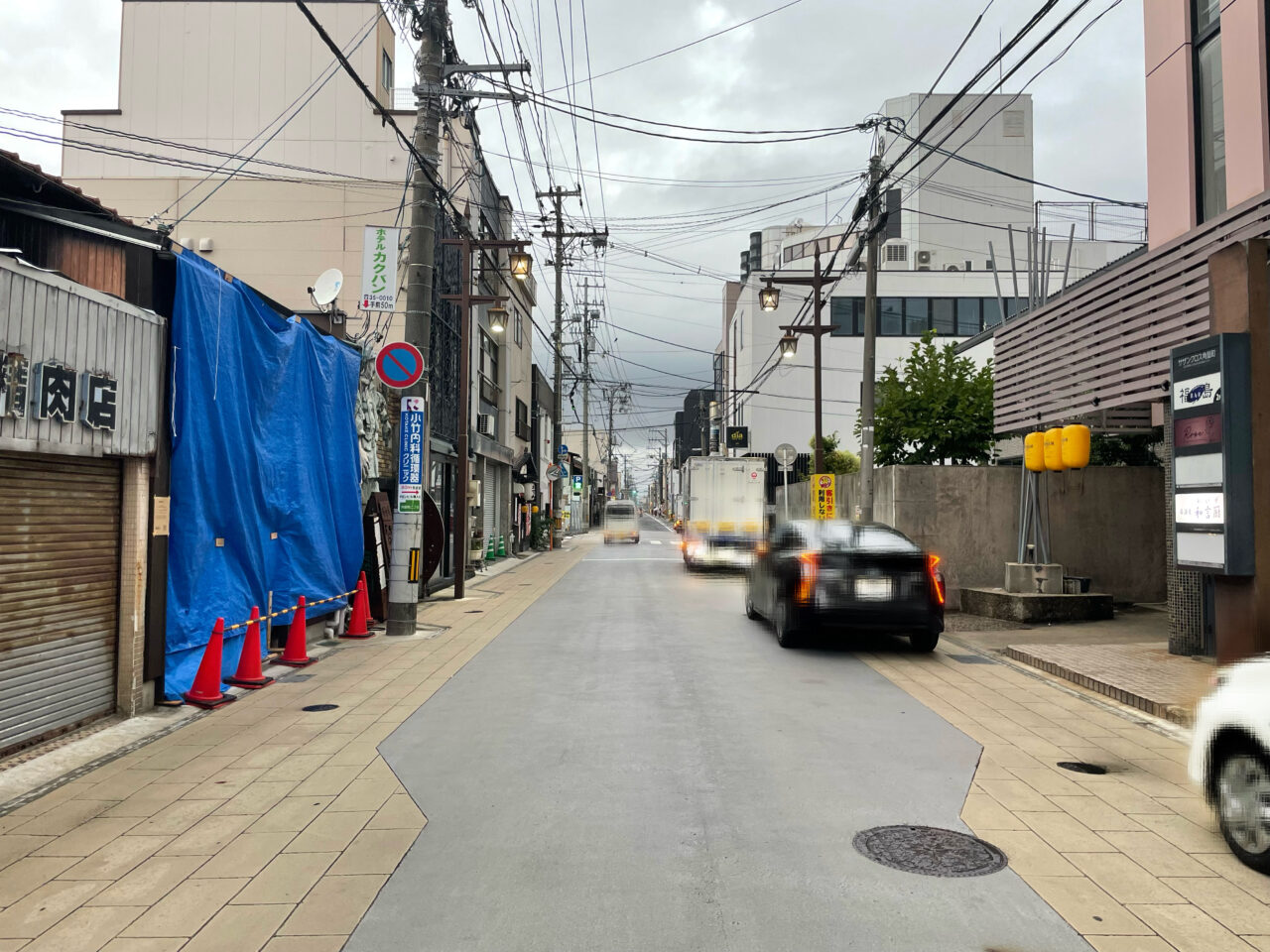 場所は「山本精肉店」の隣。向かいには居酒屋「和言厨 (わいず)」があります。