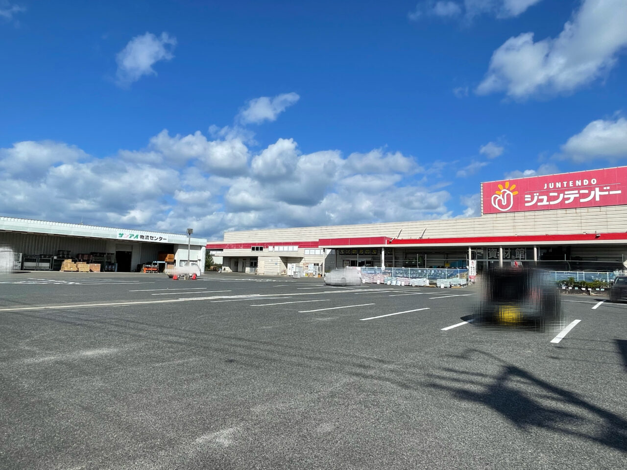 ジュンテンドー境港店、左側がサンアイ物流センター。