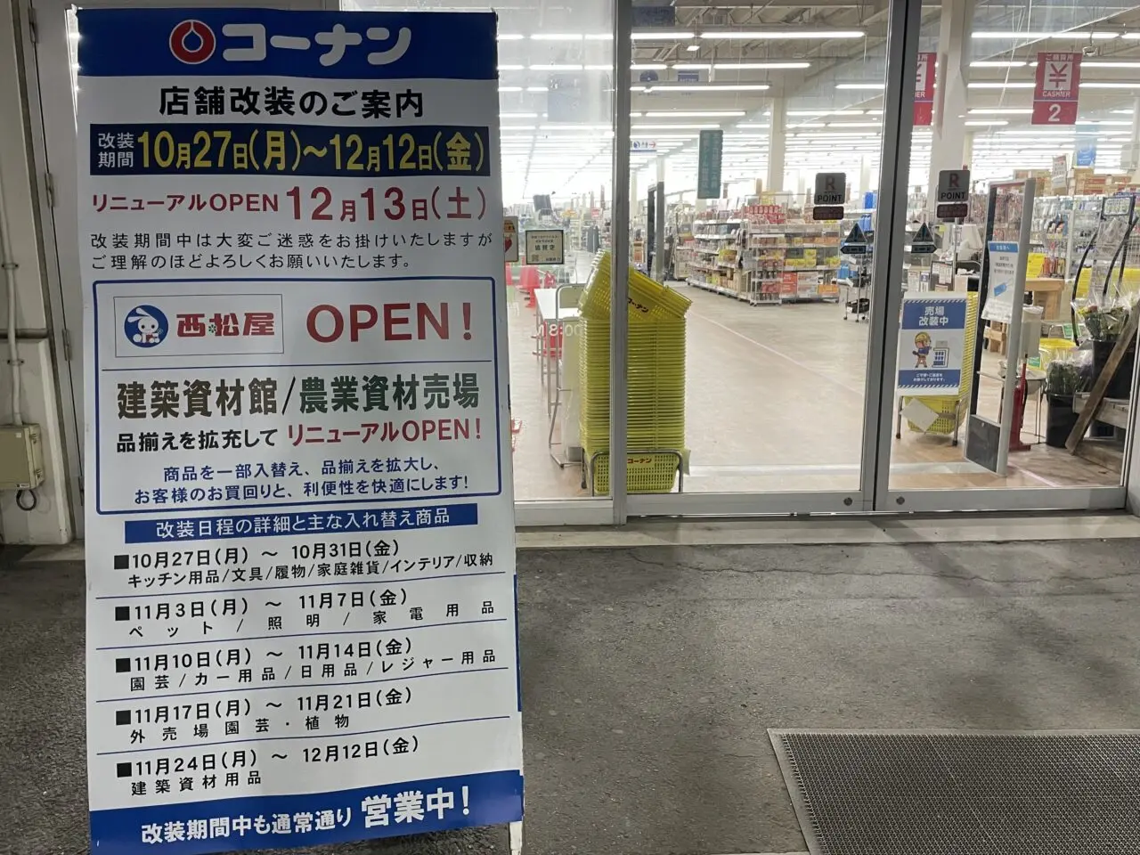 現在、コーナン米子河崎店ではリニューアルオープンに向けて改装工事が行われています!