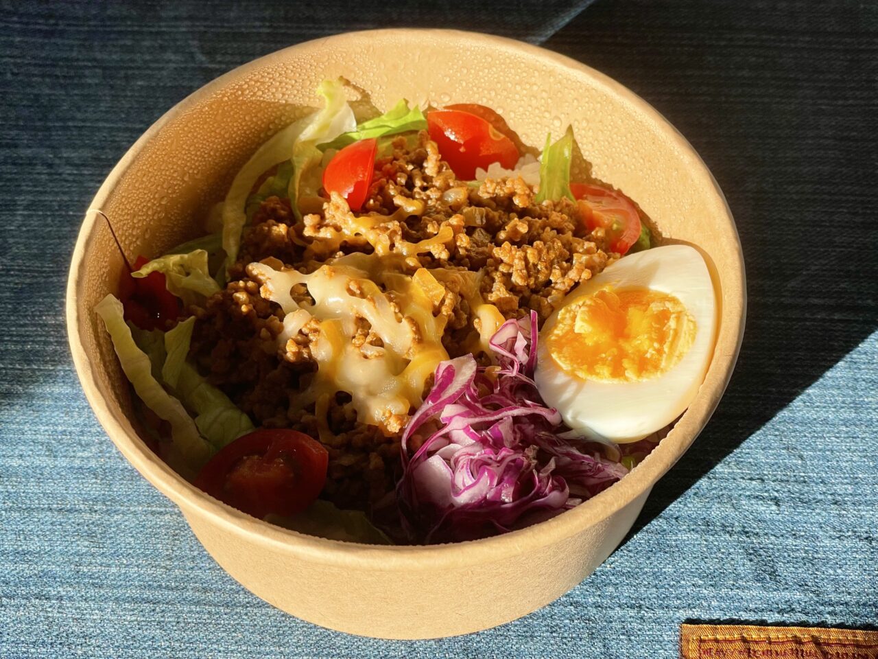 この日のお弁当はタコライスでした!メニューは前日、Instagramにアップされます。1件300円で配達のサービスも(米子市内・3日前迄に要予約)。