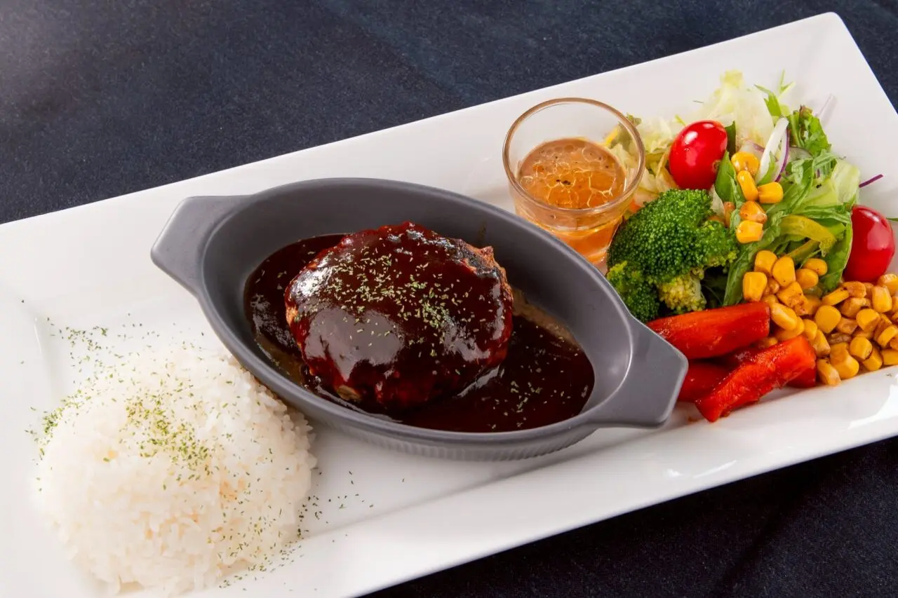 “肉肉しさ”を出すために、試作を重ねたハンバーグもオススメとのこと!プレートはソースを4種類から選べます。
