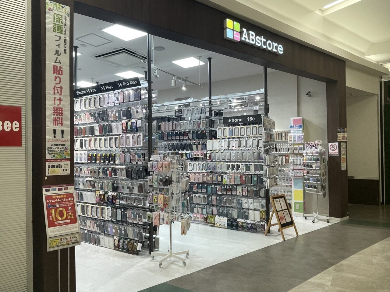 AB storeは、スマートフォン関連の雑貨やアクセサリーを取り扱う専門店です。スマホケースや保護フィルム、イヤホン、充電ケーブル、モバイルバッテリーなど、スマートフォン周りのアイテムを幅広く取り揃えています。