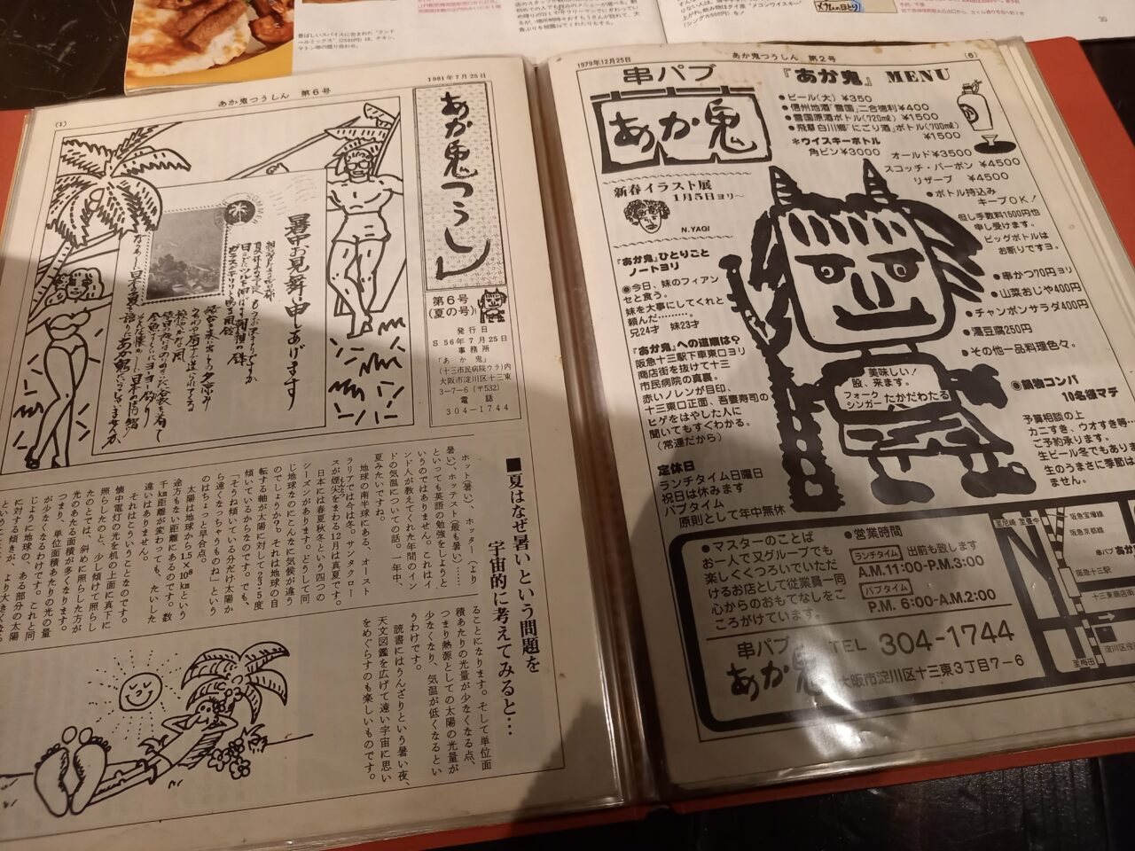 1991年発行の雑誌には、あか鬼の看板メニューが紹介されていました